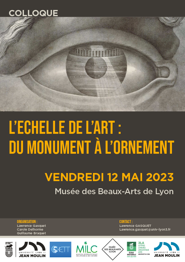 - Colloque L'Echelle de l'art, du monument à l'ornement, Musée des Beaux Arts de Lyon, 12 mai 2023, inscription ici